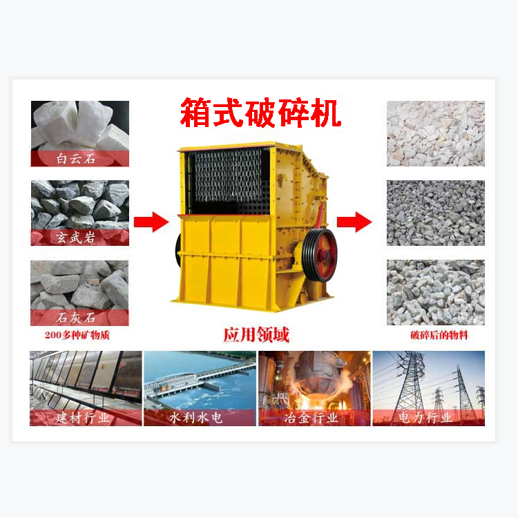 方箱式破碎機,屬于大型的破石機設備,一臺箱式破碎機替代了粗細兩級顎式破碎機,對于各類中等及以下硬度的物料進行粗、中、細碎處理,一次破碎代替分級破碎,更省事、更省錢,根據結構形式分為固定式和移動式,且種類型號齊全。